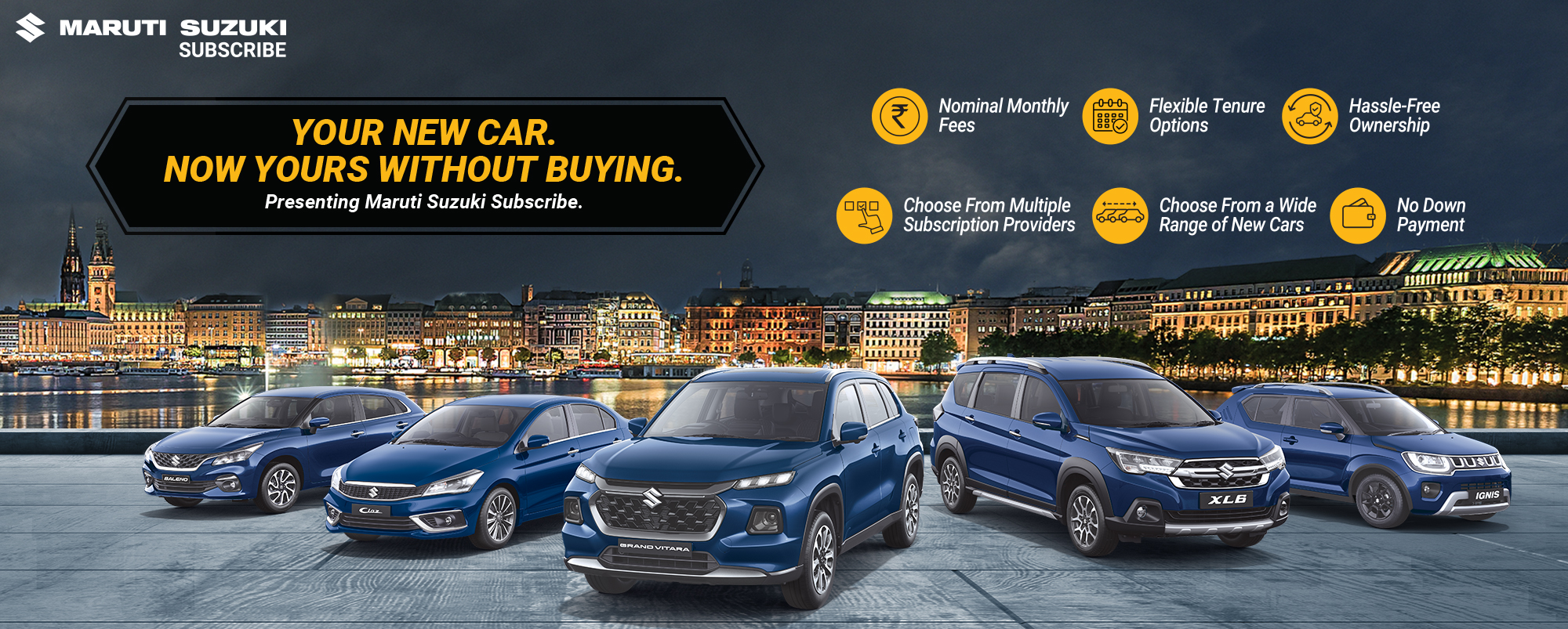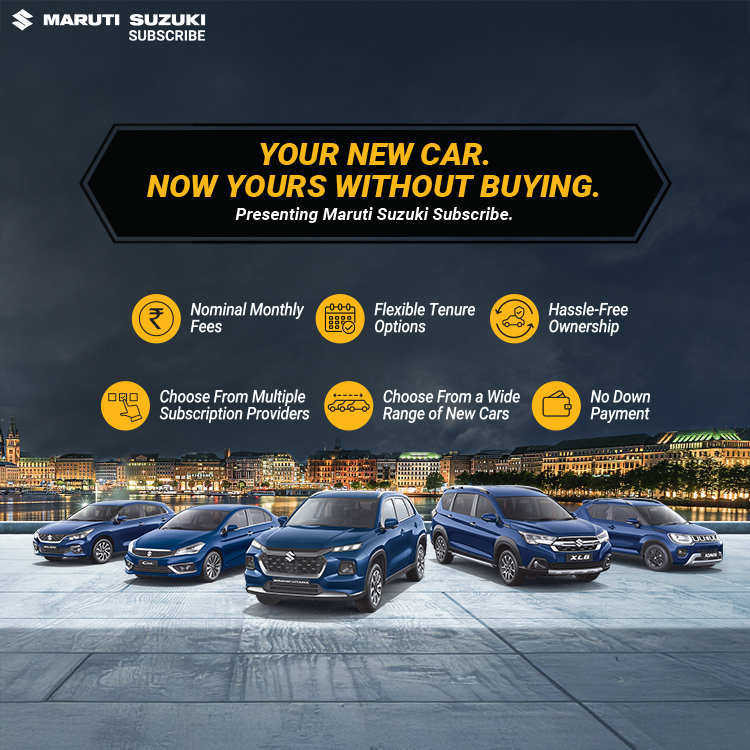 Maruti Suzuki Subscribe enables all customers to enjoy driving their preferred Maruti Suzuki cars without having to deal with all the financial responsibilities that come with owning a car.All you need to do is opt for a monthly subscription plan at a fixed monthly fee, which includes the routine maintenance and insurance costs, and choose a flexible tenure. At Adinath Cars in, NEXA Baheriya Gadgad Sagar, Bamora, all Hatchback, Sedan, SUV, the MUV models line-up includes Baleno, Invicto, EVitara, Jimny, Ciaz, Ignis, Fronx, Grand Vitara, XL6. Here, you will enjoy Maruti Suzuki Subscribe benefits such as: